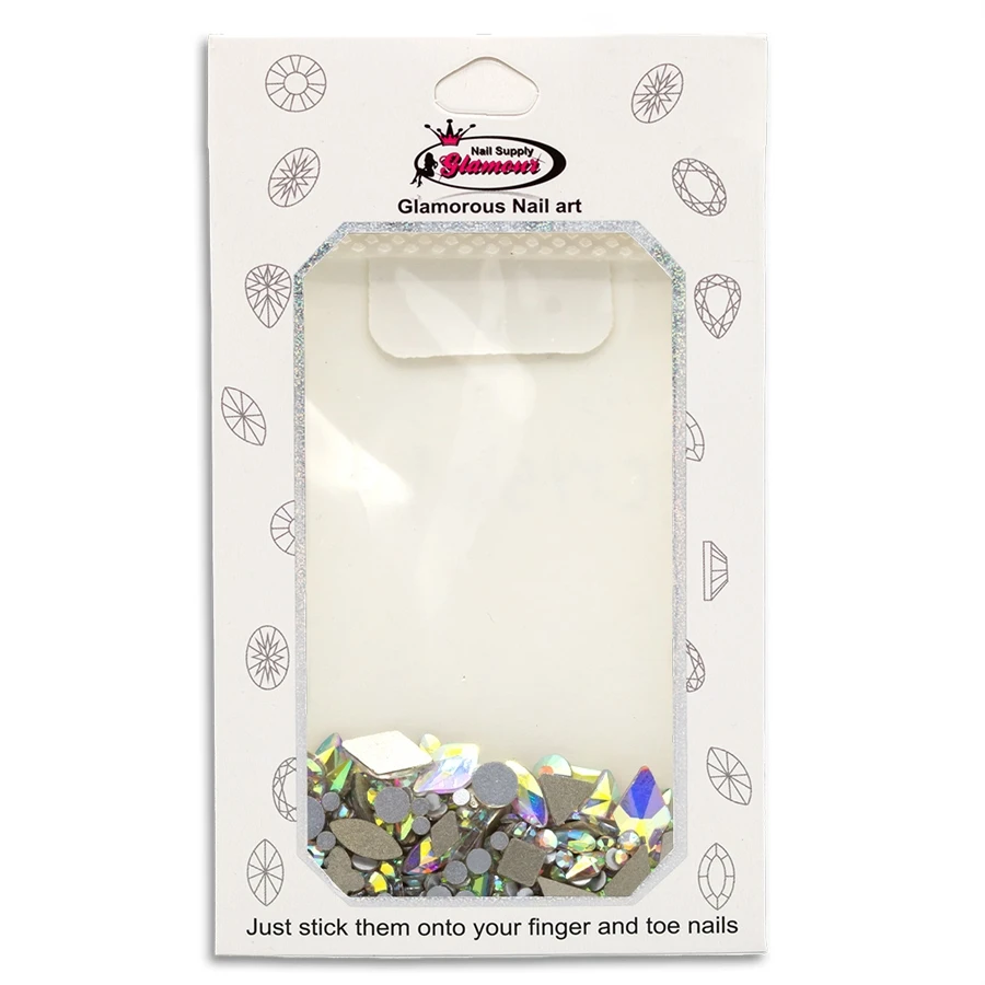 Contains a mixture of different shapes and rhinestone sizes.