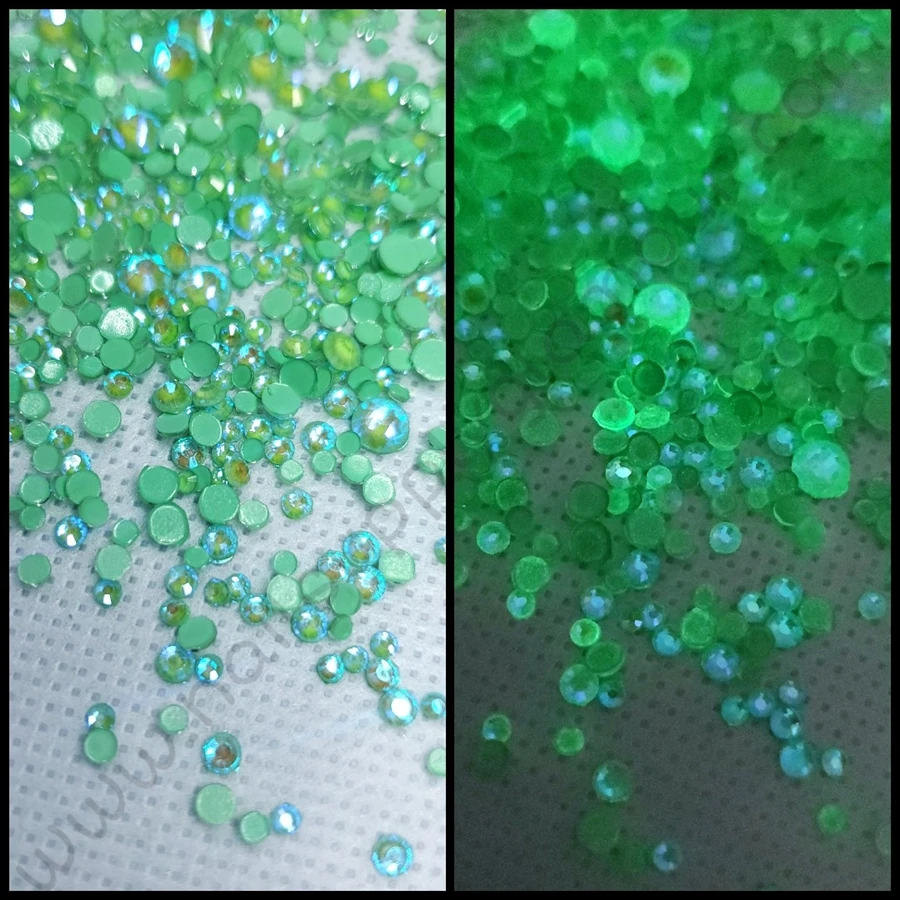 Crystals MIX SIZES GLOW In The DARK ( GREEN AB ) 1440 Pcs