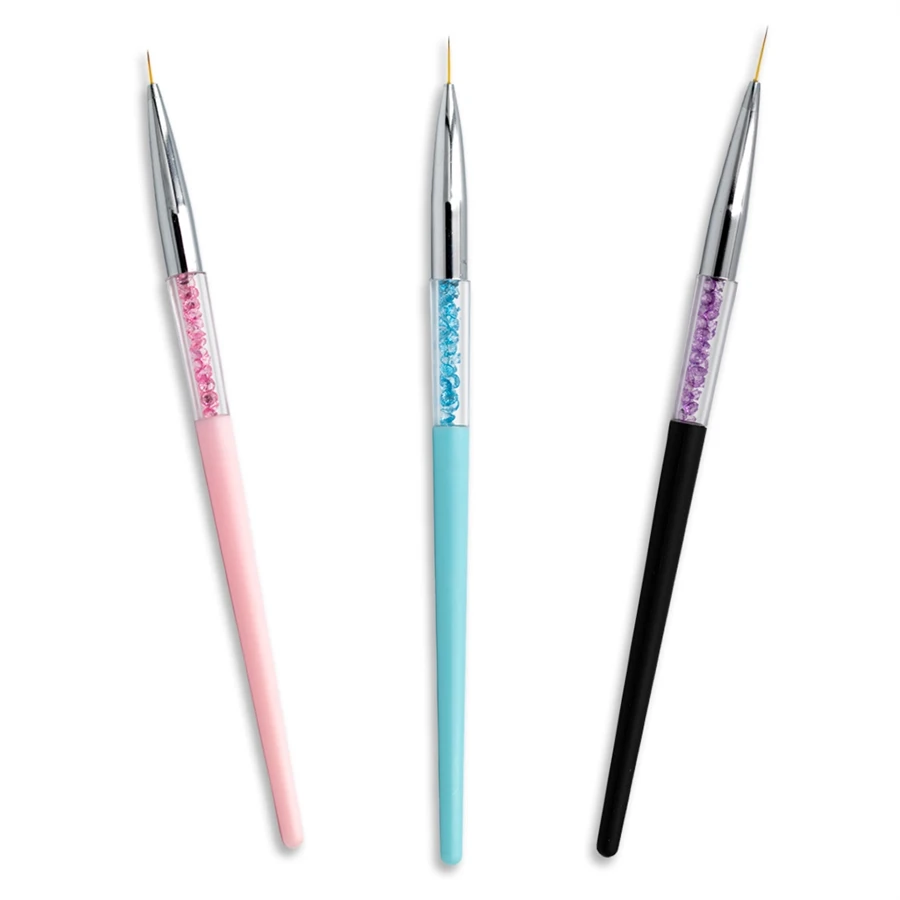 Our New Diamond Handle Nail Art Brush Set comes with 3 different size Liner Brushes that can be used for gel, painting, nail art, or any of your personal uses. Perfect for practicing.