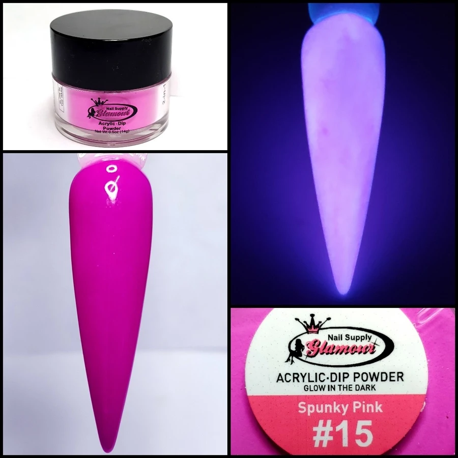 Glamour 2 In 1 Acrylic & Dip GLOW “SPUNKY PINK” #15 1/2oz