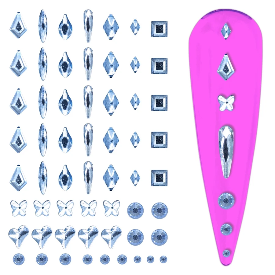 Contains a mixture of different shapes and rhinestone sizes.