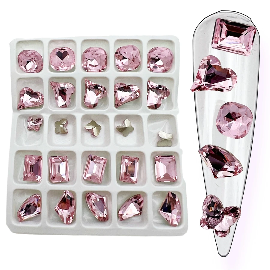 Pink / Crystal Shapes / Diamonds / Box / 25pcs