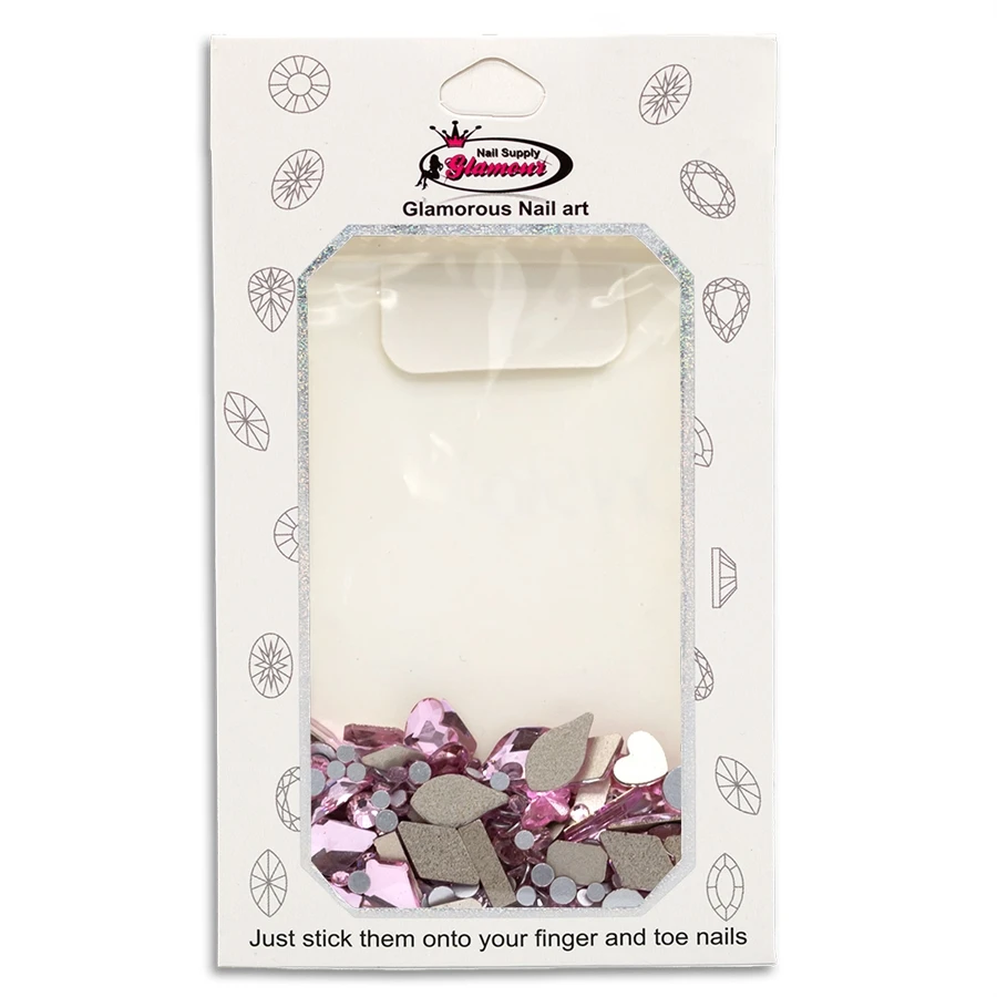 Contains a mixture of different shapes and rhinestone sizes.