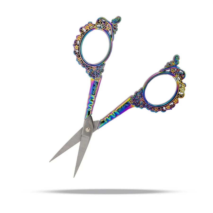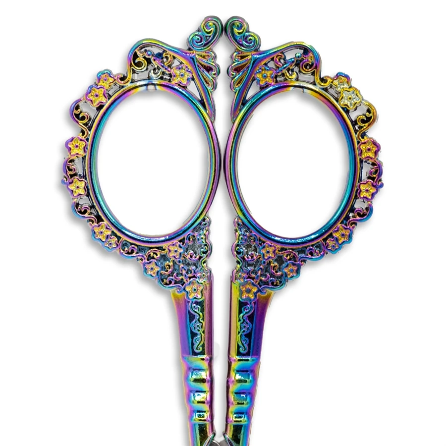 Our High Quality Rainbow Flower Scissors are used for china silk, embroidery and nail wraps, or any of your needs. This blade is sharp and cuts the entire length of the blade. Extremely attractive and cuts every time. Titanium is extremely hard and will not dull.