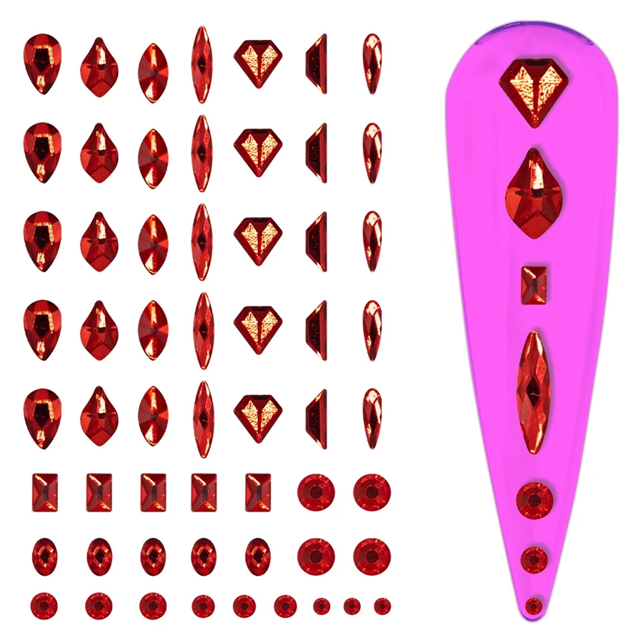 Contains a mixture of different shapes and rhinestone sizes.
