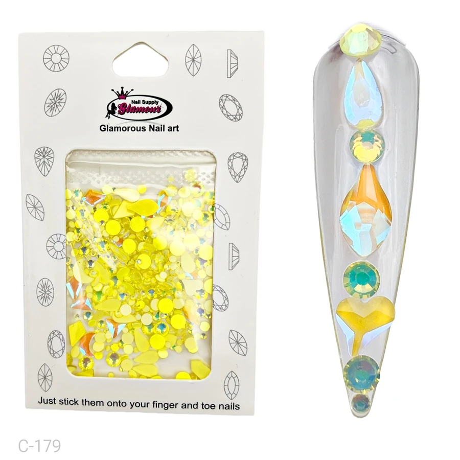 Yellow Crystal Shapes / Sizes Mix / Yellow Diamonds / Yellow Rhinestones / Yellow Charms